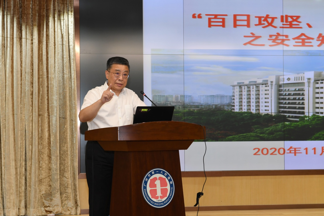 2020年11月4日,广州市第一人民医院在门诊九楼学术报告厅举行了“百日攻坚战 全年保平安”安全工作会议,曹杰院长、黄光烈书记、贺小伶副书记、江新青副院长、蔡国才纪委书记及总支书记、职能部门和临床科室的安全管理责任人参加此次会议,会议由江新青副院长主持。