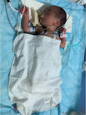 “早到”的小天使出现了意外早产的危急情况,只见男婴面色紫绀、呻吟吐沫、皮肤青紫、四肢松软、心率下降、阿氏评分1分钟3分,这是一个典型的濒死儿!情况万分危急,男婴命悬一线,在场的医护人员无一不感到揪心。