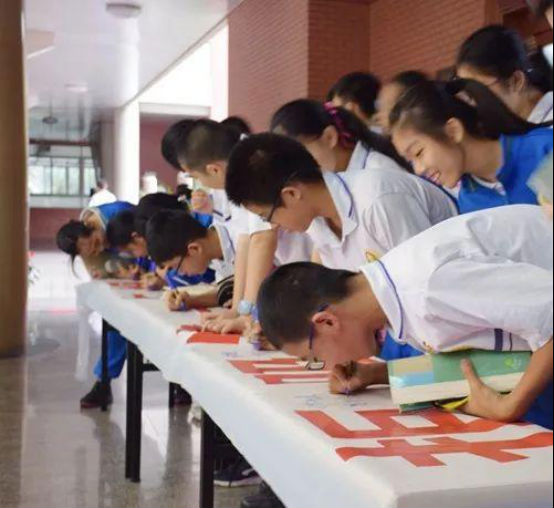 广雅中学学生们纷纷在“拒吸第一支烟”条幅上签名,为了健康,为了未来!