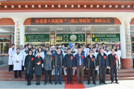 ▲波密县人民医院“二级乙等医院”挂牌仪式