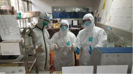 面对突发的疫情,在检验科主任徐邦牢的带领下,科室立即启动应急预案,制定出应对疫情的工作流程和实验方案,PCR室人员紧急进行穿脱防护服、标本检测等生物安全和操作培训,退掉回老家的火车票,放弃与家人的团聚,第一时间回到自己的工作岗位,一切工作有条不紊......