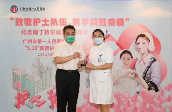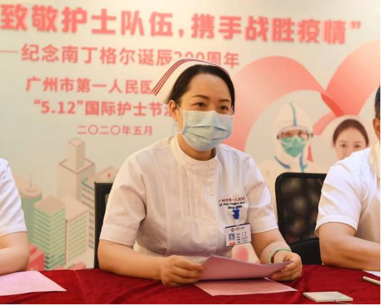 重症五区苏远清代表“最美逆行者”发言,她回忆17年前在前辈们的带领下参与了抗击“非典”的一线战斗。17年后的她作为援鄂护理团队带头人奔赴武汉投入“抗疫”战斗最前线。她感谢政府、医院大后方及各级领导的关心关爱,让他们得以全心抗疫,无后顾之忧!她表示,虽然社会赞誉他们是没有硝烟战场上的英雄,但是她认为,他们只是在特殊时期,履行自己的责任与担当,体现国家需要他们的使命感,不管在武汉,还是在广州,他们只是做了作为护士该做的事情;她坚定的表示,即使疫情过去,他们也会发挥自己的一份光和热,把白衣天使的理念、目标、使命和爱传递下去。