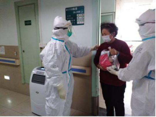 3月8日,在第110个“三八”国际劳动妇女节当天,广州市第一人民医院援鄂医疗队在队长余纳的带领下,带着全体队员的祝福小礼物,走进武汉大学中南医院隔离病区,为患者们打气加油。