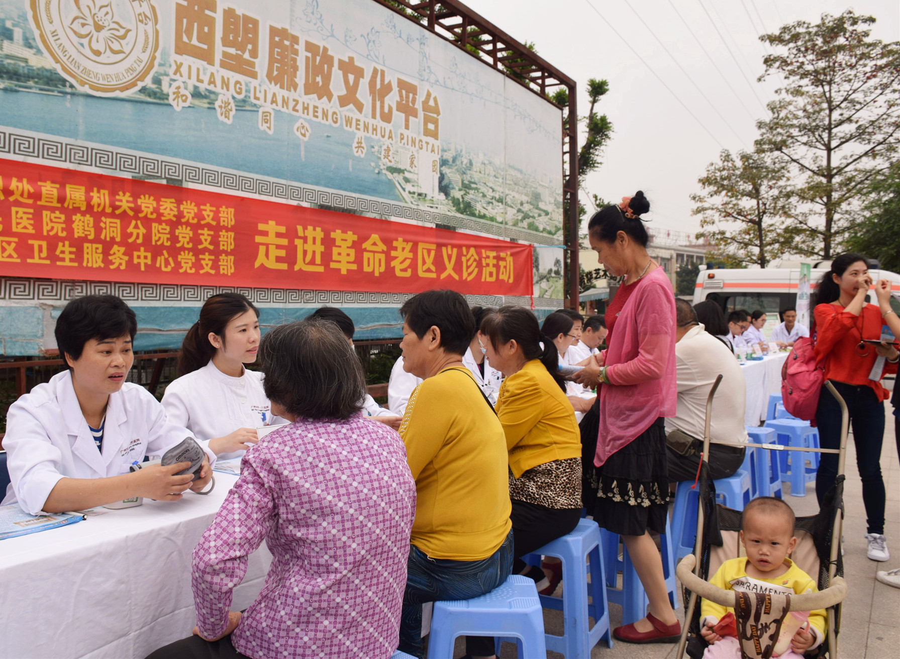 2018年4月3日上午,广州市卫生计生委组织处直属机关党委党支部、广州市第一人民医院鹤洞分院党支部、荔湾区东漖街社区卫生服务中心党支部,联合在西塱文化活动中心进行“调研基层党建暨医联体义诊进革命老区”主题党日活动。此次主题党日活动由三部分内容组成:义诊活动、基层党建工作座谈会、参观裕安围革命纪念馆。