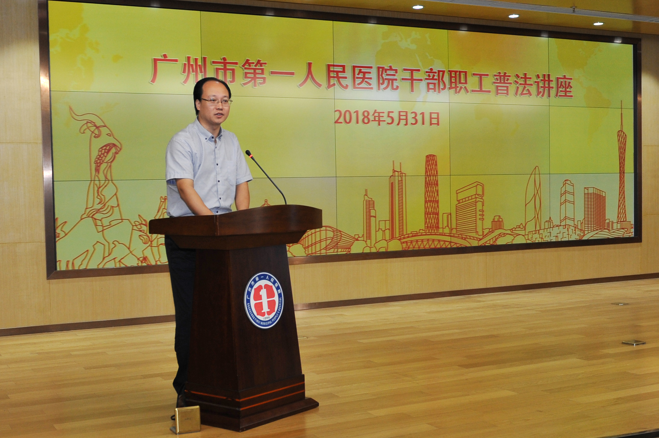 为全面贯彻落实党的十九大精神,坚持以习近平新时代中国特色社会主义思想为指导,进一步增强我院干部职工的宪法意识,准确把握《宪法修正案》的核心要义和精神实质,2018年5月31日下午,我院邀请中山大学法学院副教授孙莹在英东门诊九楼学术报告厅为我院中层干部及广大医务工作者做普法讲座。党委书记黄光烈及广大医务工作者共100多人参加了讲座,南沙医院同时进行了现场视频转播。
