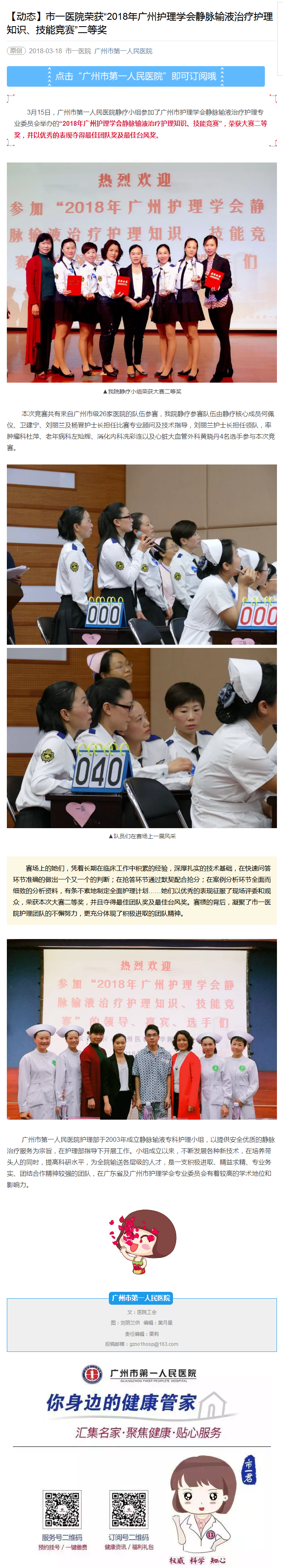 我院荣获“2018年广州护理学会静脉输液治疗护理知识、技能竞赛”二等奖