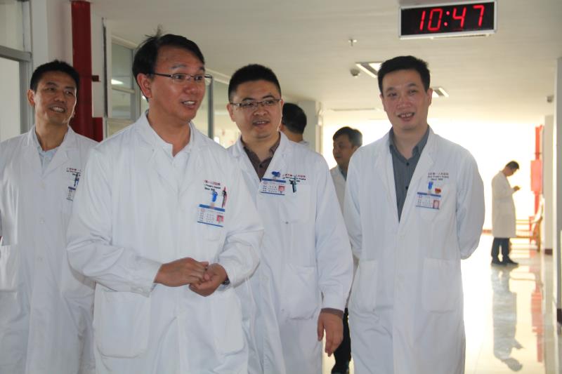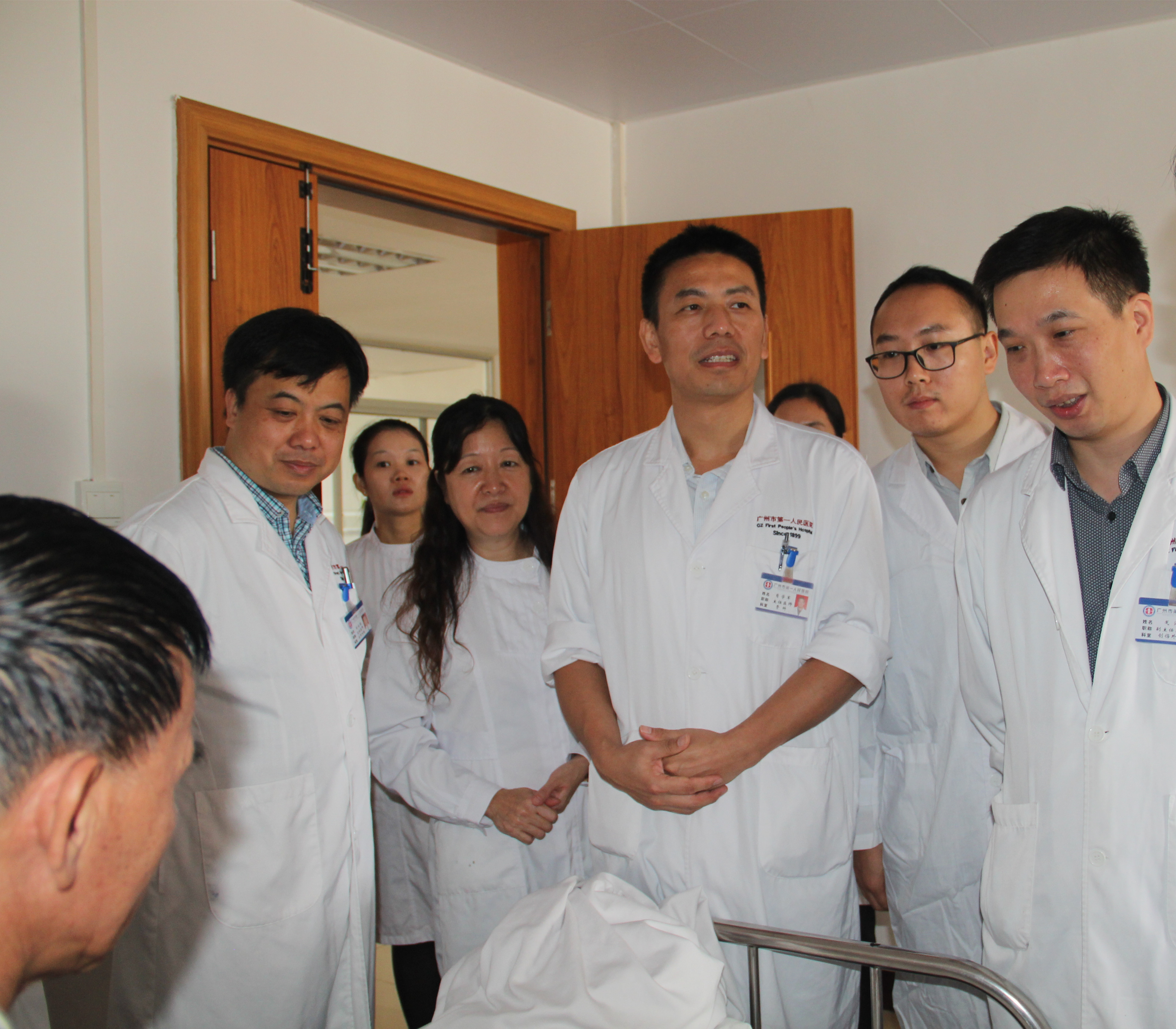 义诊完后,外科三支部的党员来到新兴县中医院重点科室骨科病区进行交流,与该病区医生组织教学查房,了解特殊病人的病情及诊疗情况,并给予相关的指导和治疗意见。查房期间,一位90岁的老革命患者对我们此次义诊之行表示十分地感激和赞许,激动地握住我们党员同志的手,更是向我们竖起了大拇指。
