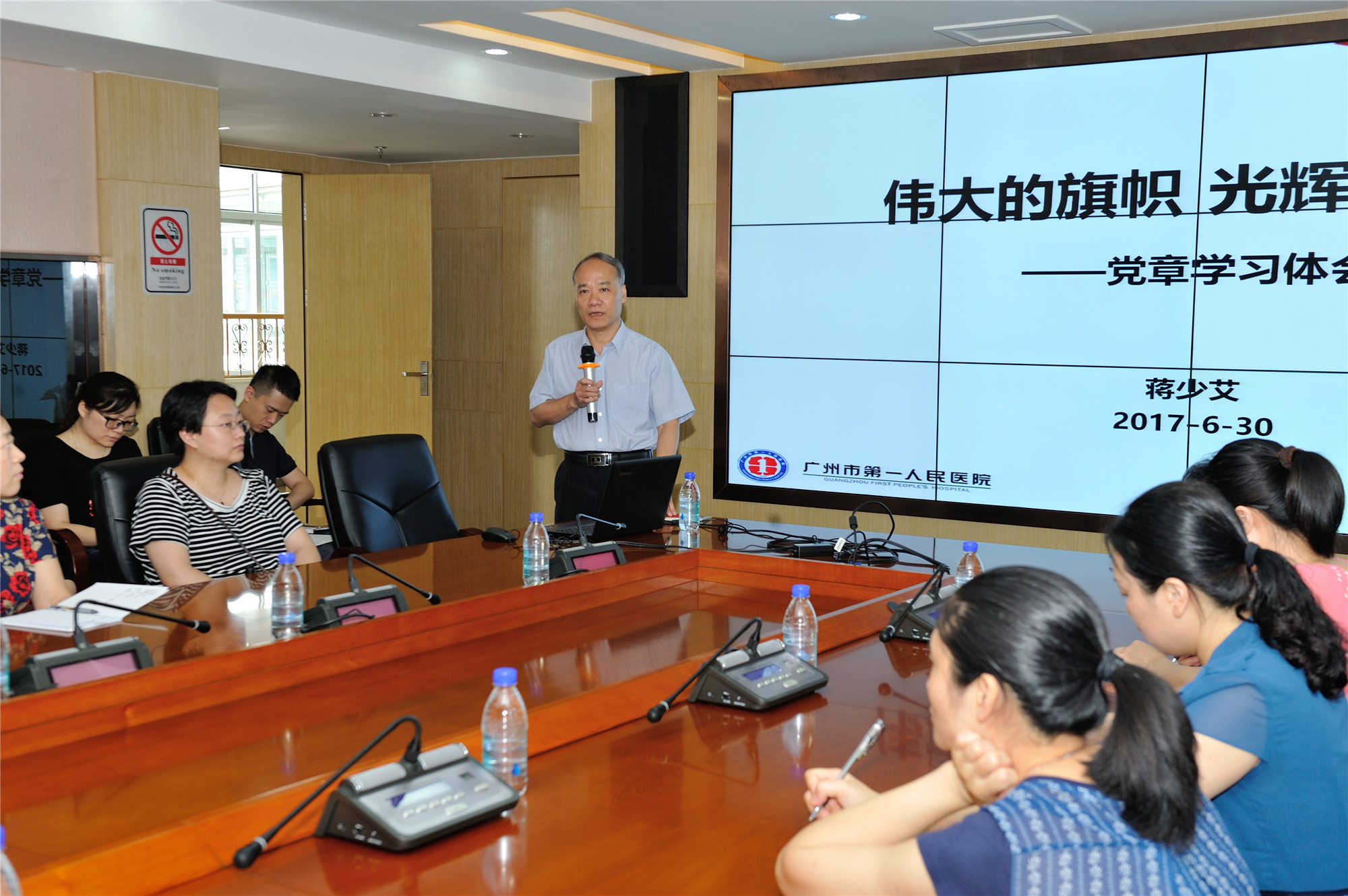 贺小伶副书记主持专题讲座,蒋少艾书记以“伟大的旗帜,光辉的历史--党章学习体会”为主题上了一堂精彩的党课。蒋书记在党课中深入讲解了中国共产党章程的形成、发展和演变的历史轨迹,解读了党章的基本内容,回顾党章制定和修改的历程。