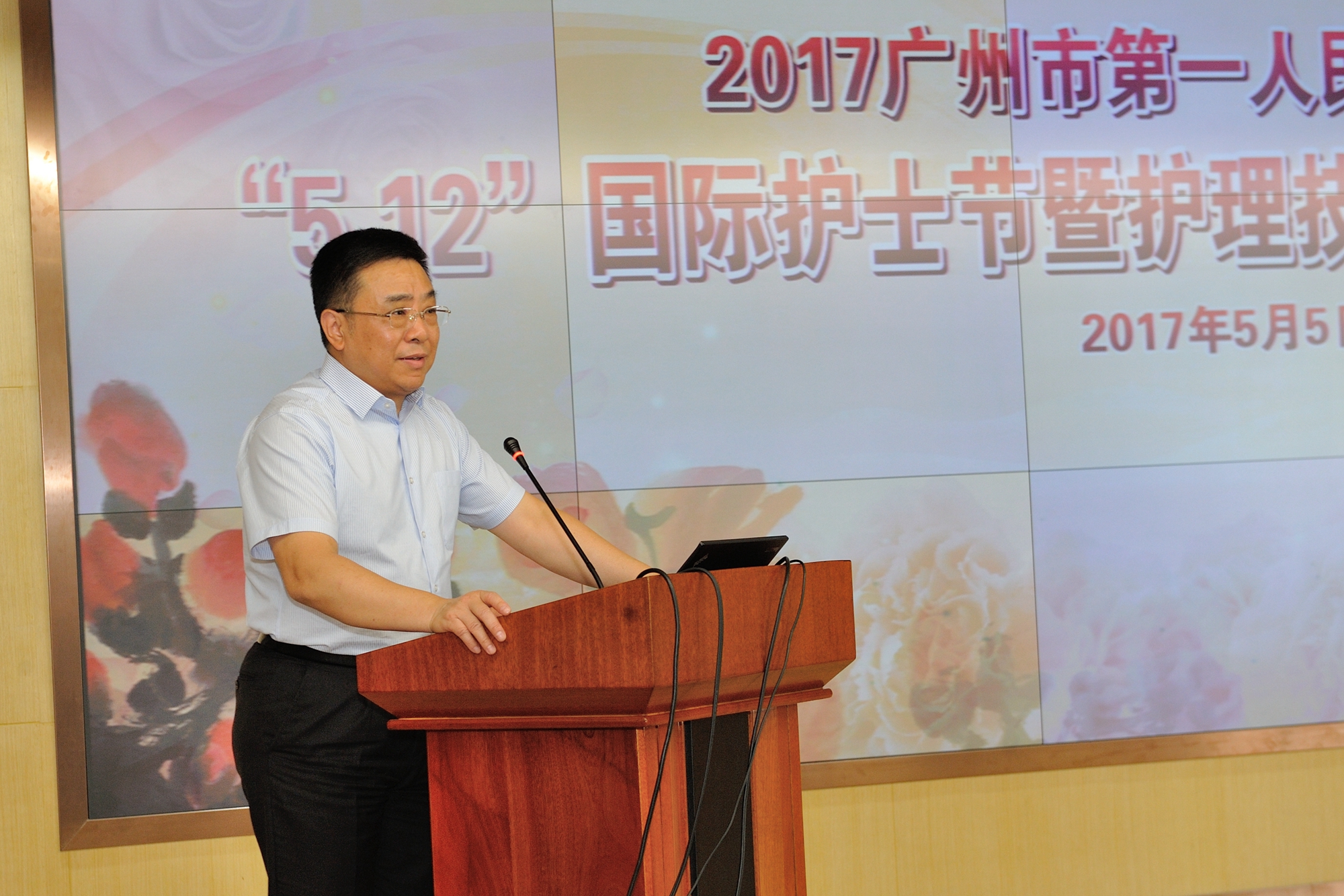 曹杰院长在会上发表了热情洋溢的讲话,他首先代表领导班子向全院的护理工作者致以节日的问候,祝贺受到表彰的护理团队和个人。曹院长表示,三分治疗,七分护理,市一医院的发展离不开各位护理同仁的兢兢业业、任劳任怨,也更加欣喜地看到了年轻医务人员的成长。医院从