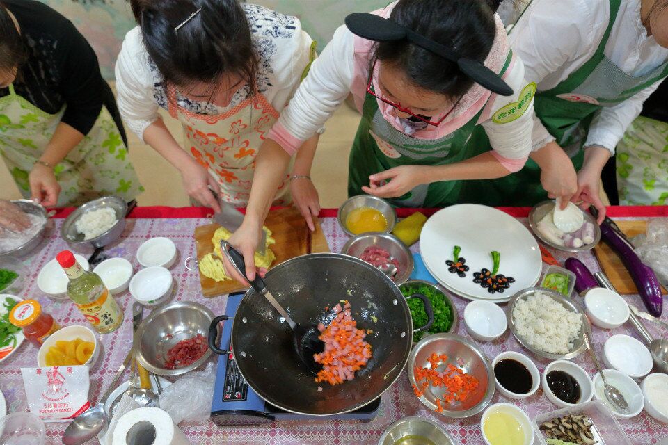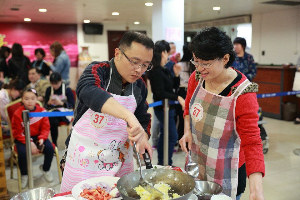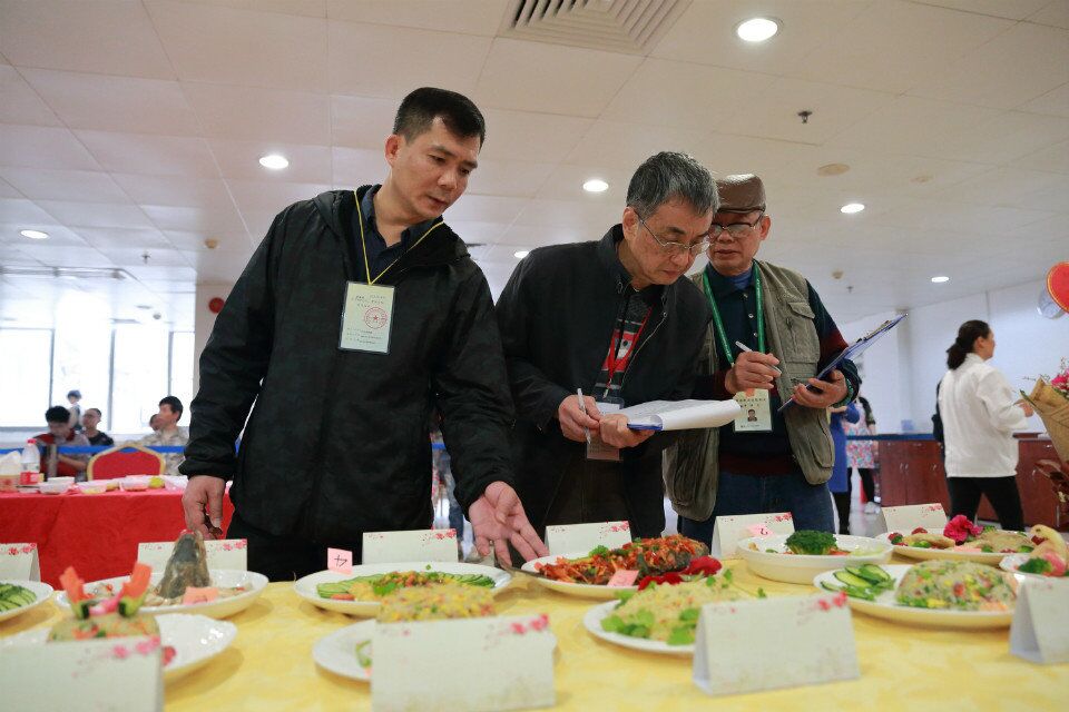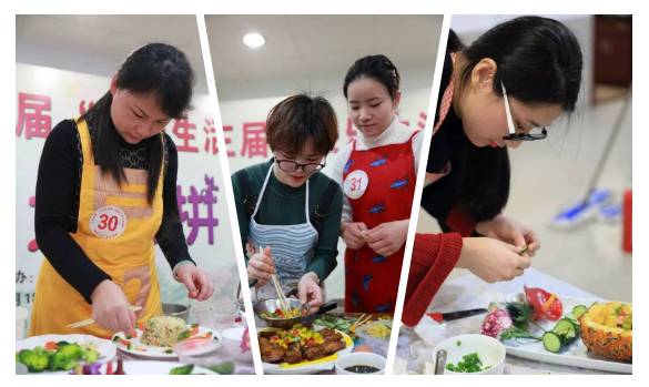 大赛分为规定菜式和自选菜式两项比赛内容,现场选手们纷纷拿出看家本领,亮出绝活一决高下,麻利地操起锅碗瓢盆,熟练地调起油盐酱醋,“煎、炒、炸、烩”样样拿手,每一道工序都娴熟老道,选手对每一道菜都进行了精心选材、精妙设计,有的注重“包装”,有的注重火候、有的注重味道,一个个菜式都力求“色、香、味、形”俱全,大家合作默契,热情高涨。灶台前女同志们自然是主力军,男同志们虽少,可也须眉不让巾帼,洗鱼剪虾炖排骨,颠勺翻炒火焰高,十八般武艺,十八般兵器,八大菜系,五味俱全。值得一提的是本届大赛还出现了几对分工明确配合默契的“夫妻搭档”,站在旁边的员工“观众”纷纷伸出大拇指为他们点赞。