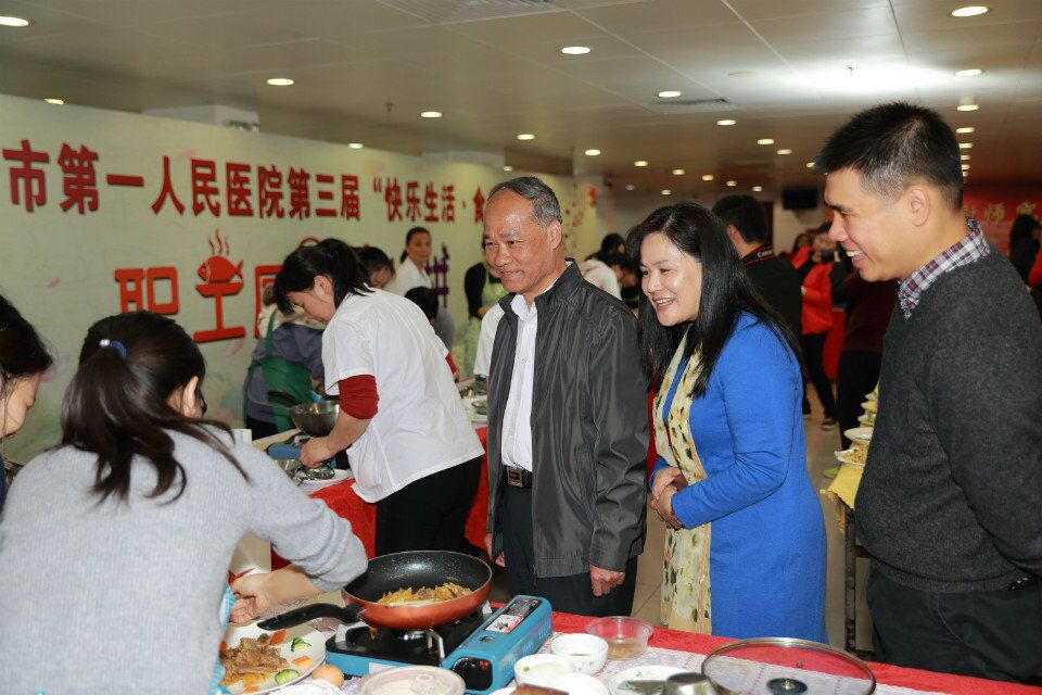 曹杰院长、蒋少艾书记、贺小伶副书记、黄光烈副院长为获奖选手颁奖。院领导对各参赛选手昂扬奋发的精神风貌、精湛娴熟的烹饪技能给予高度赞扬,并和大家一起品尝自己的劳动成果,成功的喜悦挂在每个人脸上,职工们纷纷表示:创意十足的员工厨艺大比拼活动,不仅给大家带来了欢乐,更让我们充满了凝聚力。本届厨艺大赛也达到了增进交流,弘扬饮食文化,倡导健康生活及科学合理的膳食习惯,进一步丰富我院职工的文化生活的目的。