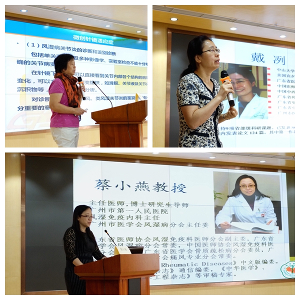 痛风作为常见病、多发病,其最新的诊治进展受到很多人关注。中山大学附属第二医院的戴冽教授为参会人员详细讲解2016年痛风诊治进展。广州医科大学附属第二医院的陶怡教授为大家带来了关节炎的诊疗新思路,她的讲座题目为《针式关节镜在关节炎诊疗中的临床应用》。