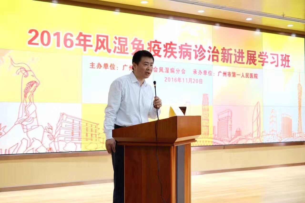 2016年11月20日,我院风湿免疫内科成功举办了“风湿病诊治新进展”学习班。本次会议由广州市医学会风湿病学分会主办,广州市第一人民医院风湿免疫内科承办,活动现场爆满。广州市第一人民医院院长曹杰和广州市医学会常务副会长黄毅为大会致开幕词,风湿免疫内科蔡小燕主任主持开幕式。