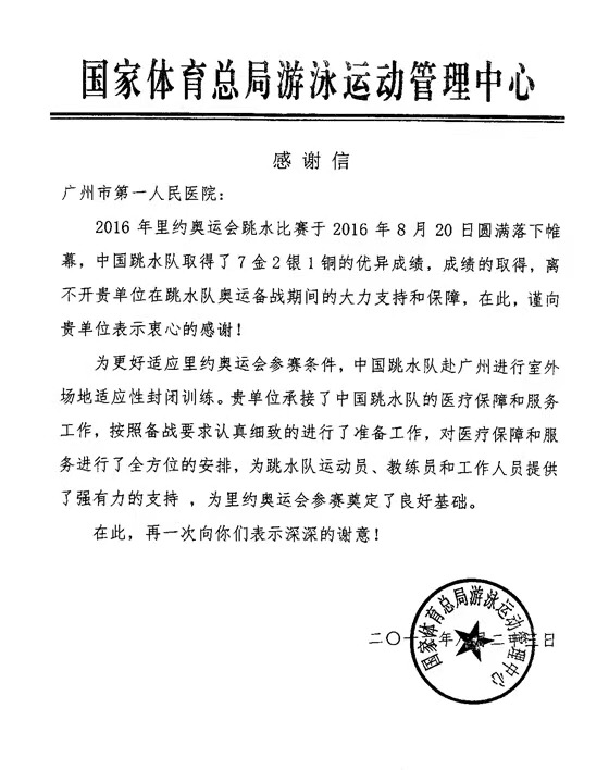 你承担中国跳水队广州训练医疗保障工作,