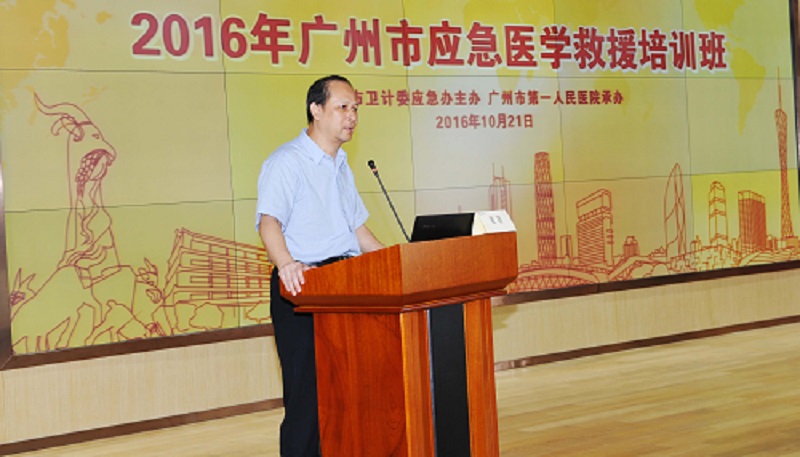 10 月 21 日上午,由广州市卫计委应急办主办,我院承办的2016 年广州市应急医学救援培训班在英东门诊九楼学术报告厅举办,来自广州各区医疗卫生系统250多名学员参加了培训。我院医务部余纳副主任主持本次培训会议,大会在我院曹杰院长与广州市卫计委应急办黄蓓主任的致辞中拉开序幕。