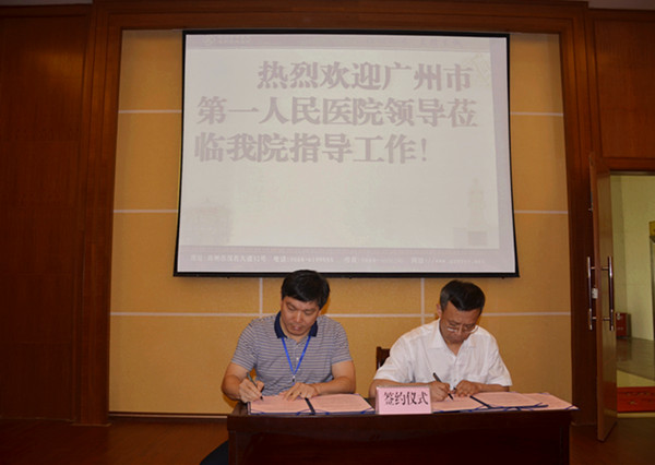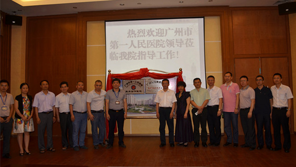 2016年5月18日,我院聂玉强副院长带领行政、临床、护理一行12人赴高州市中医院举行医疗技术协作签约暨“广州市第一人民医院技术协作医院”和“广州消化疾病中心高州临床诊疗基地”揭牌仪式。