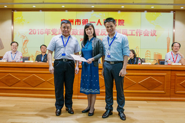 2016年4月20日下午,医院在九楼学术报告厅召开了党风廉政建设暨反腐纠风工作会议,市纪委派驻市卫计委正局级监察专员马国业同志,医院特邀行风监督员江晓芬同志出席了此次会议,全体院领导、中层干部、部门工会主席、重点岗位班组长等200余人参加了会议。会议由曹杰院长主持。