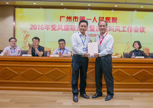 蒋少艾书记与党总支、党支部签订了《医院2016年党风廉政建设责任制责任书》