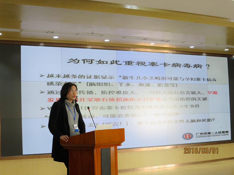 3月1日下午,我院在英东门诊九楼学术报告厅组织开展了《寨卡病毒病诊疗方案及防控》培训,窗口部门及临床科室医务人员等近百人参加了培训。聂玉强副院长主持本次培训。