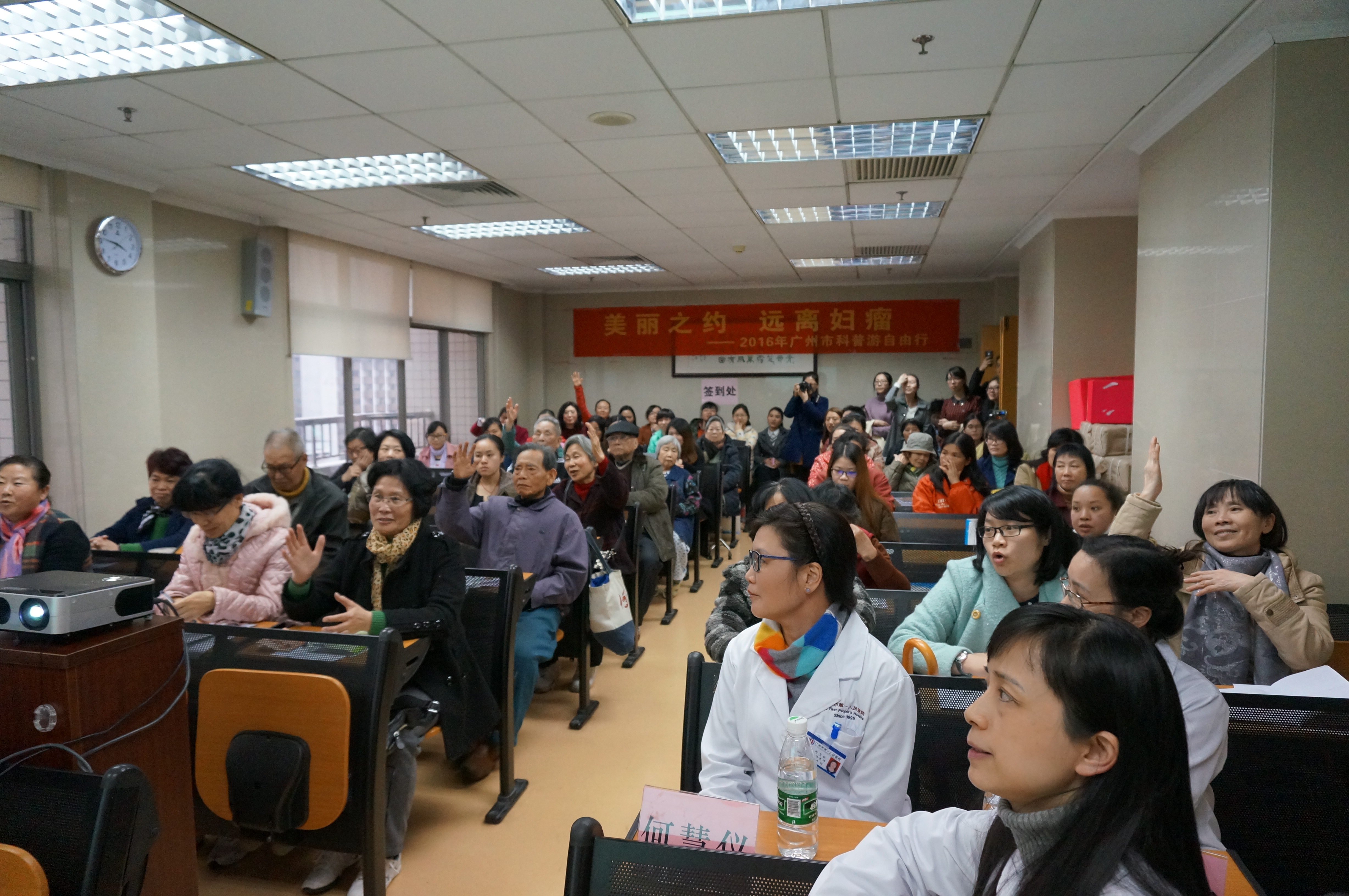 2016年1月22日下午,我院妇产科联合广州市科协在磐松楼1号楼11楼示教室举办了一场以“美丽之约,远离妇瘤”为主题的科普自由行活动。本次活动旨在分享女性防癌的基本常识,搭建医患共同交流的平台。虽然天气寒冷,但前来参加讲座义诊的市民非常多,现场气氛十分热烈。