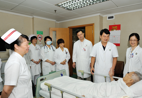 为纪念中国人民抗日战争暨世界反法西斯战争胜利70周年,9月2日,我院发起慰问抗战老兵活动,刘朝晖副院长代表医院到磐松楼对住院抗战老兵代表及其家属进行慰问,送上节日的祝福及慰问品。