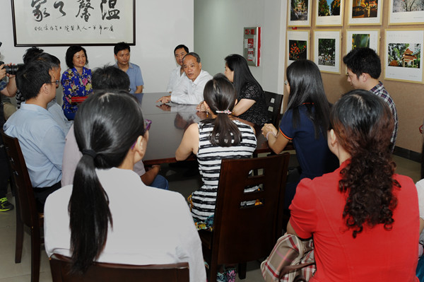 参观过展览后,蒋少艾书记和大家进行了座谈,他指出:好的摄影作品,往往能产生震撼人心的积极向上的力量,因此,摄影艺术一直得到众多爱好者的喜爱,好的摄影作品也一定会得到大家的赞美。市一是一所百年老院,历史悠久,环境优美,人文资源丰富,建院以来,我们不但有杰出的医生护士及一大批爱国爱院勤奋工作的好员工,还有和医院相伴百年的古榕和仁爱故事,春有木棉,秋有桂花,绿拥园林,香飘四季。我们要通过对榕树、木棉、桂花等的歌颂,将其成为医院的另一种美好形象代表,成为医院精神的物化表现形式。这次医院工会主办、摄影协会承办并具体组织的发现市一之美摄影大赛,主题健康,用心发现美,以镜头捕捉美,让作品表现美,活动办得很成功,得到职工的热心参与和好评,让我们更加了解和热爱自己的医院。