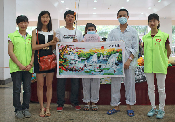 现场也涌现了很多动人故事。一个再障患儿的姐姐3个月绣成一幅1米长十字绣,拿到现场义卖,血液内科王顺清主任当场以1300元的拍卖价买下。医院科教信息部的唐颜女士,长期亲手缝制口金包等手作,将义卖善款做慈善用途,也加入了本次义卖的行列。还有很多医生、护士、市民自发来到现场,不仅参与了义卖,还纷纷淘起了自己喜欢的东西。