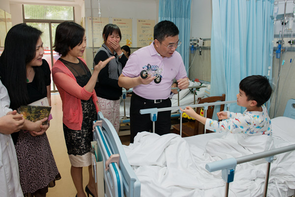“六一”当天,曹杰院长、蒋少艾书记、贺小伶副书记等一行探望儿科病房患儿