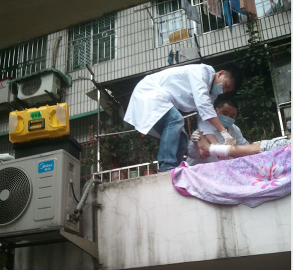 3月15日,年过花甲的老人从荔湾区西华路彩虹大厦7楼坠下,被卡在了4楼雨棚,多处受伤、血流不止。紧急出诊的我院医生梁宇翔跳过空调外挂来到老人身边止血、施救,最终成功将老人救下,梁医生也被网友赞为“蜘蛛侠医生”。