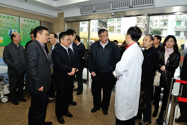 我院急诊科是广东省临床重点专科、广东省医学会急诊医学分会副主委单位和广东省急诊专科医师培训基地。曾被国家卫生部评为全国先进集体。目前急诊科医护人员共67人、护士45人。急诊科工作包括院前急救、院内急诊、重症抢救、急诊病房(留观) 、突发共公卫生事件的应对和指令性医疗保障等,任务繁重。2014年1-10月我院急诊出车总数3624次,全市名列第二。上海调研组一行实地参观了我院急诊科诊室与病房,并高度评价了我院急诊科在院前急救方面的工作成效。