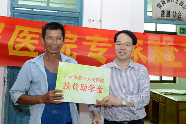 江新青副院长向贫困大学生家庭发放了第一批助学金
