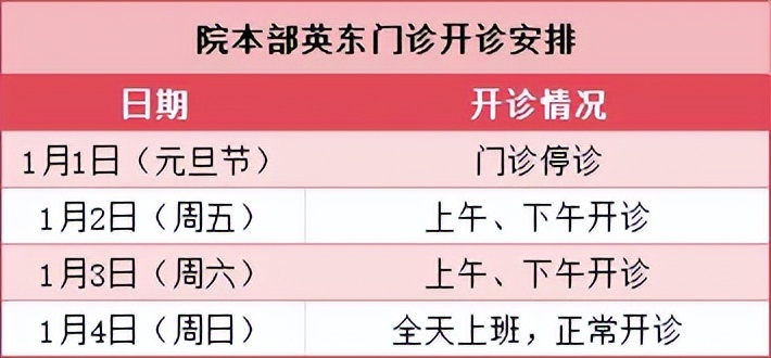 3. 元旦节假期按周末排班开诊,具体开诊专科及号源以实际排班为准。