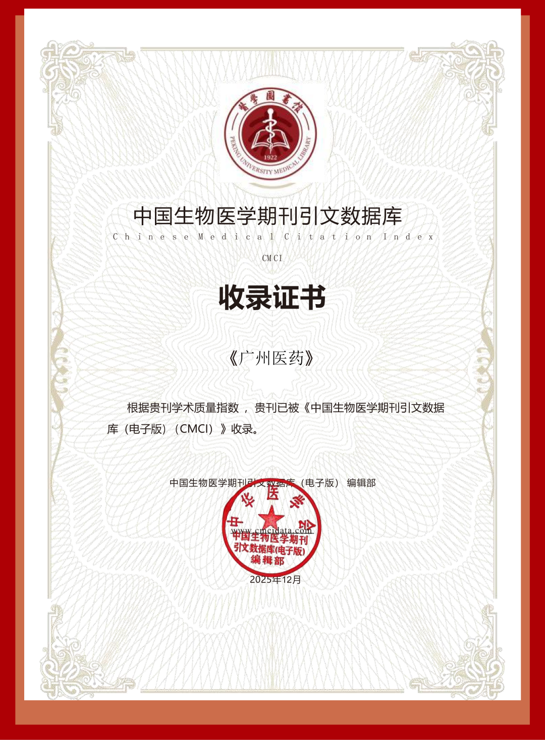 《广州医药》杂志成功收录于《中国生物医学期刊引文数据库(电子版)》(CMCI)