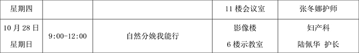 2018年10月健康教育讲座安排