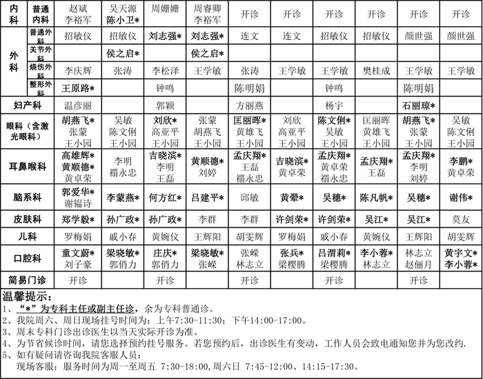 2016年7月周末专科门诊排班表
