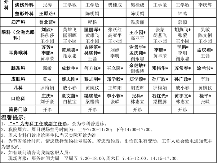2016年8月周末专科门诊排班表