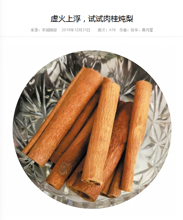 《羊城晚报》虚火上浮,试试肉桂炖梨2019年12月31日A18版