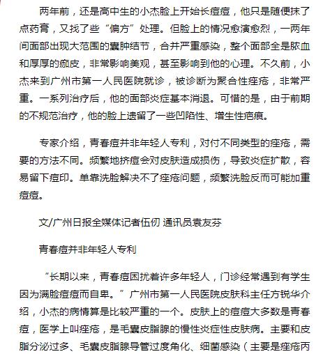 《广州日报》:想“战痘”不留痕 不要挤痘注意防晒 2019年7月24日A16版