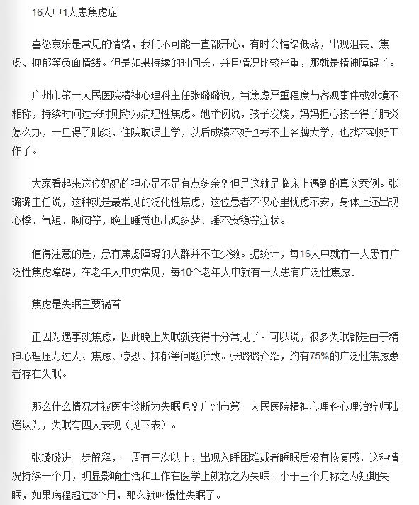 《羊城晚报》:遇事睡不着? 别让焦虑控制您的失眠 2019年3月26日A15版