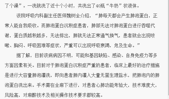 《信息时报》:肺部“发白” 阿伯洗肺洗出40瓶“牛奶” 2018年5月9日A17版