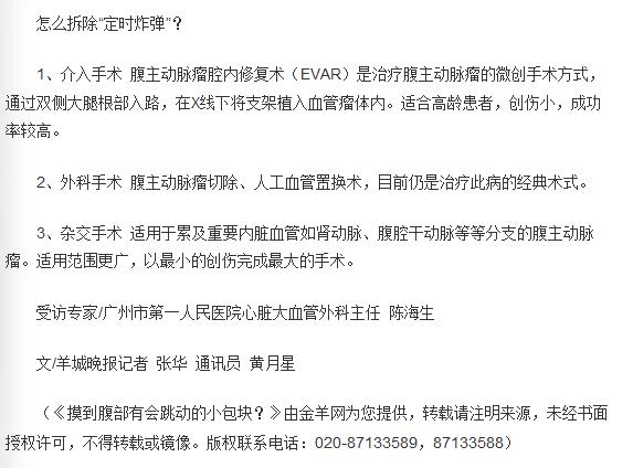 《羊城晚报》:摸到腹部有会跳动的小包块? 2018年4月17日B02版