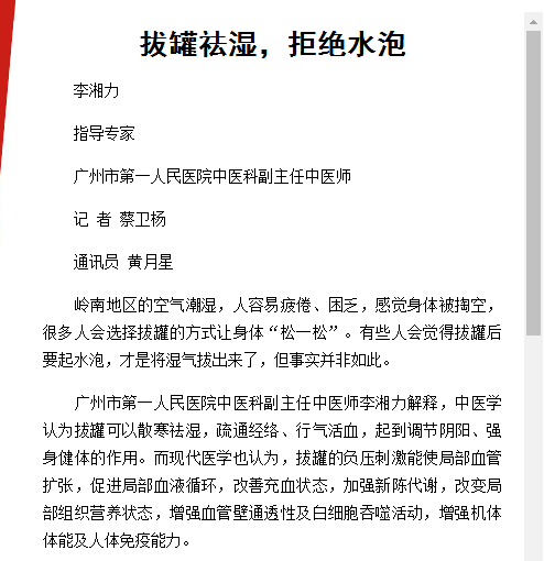 《老人报》:拔罐祛湿,拒绝水泡 2018年2月26日A10版