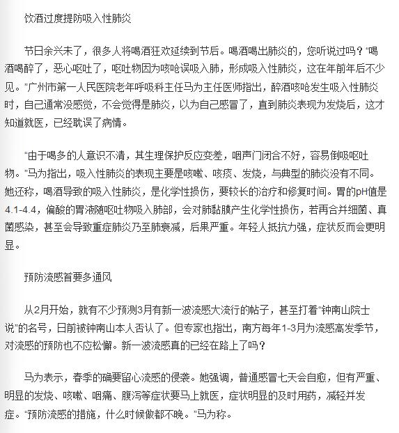 《新快报》:春季警惕流感 提防吸入性肺炎 2018年3月6日A28版