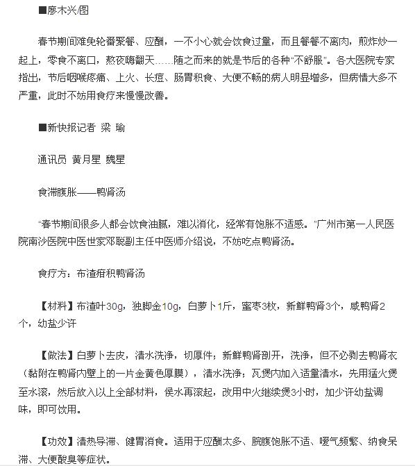 《新快报》:春节胡吃海喝导致各种不适试试这些食疗 让身体“顺”起来2017年2月14日B01