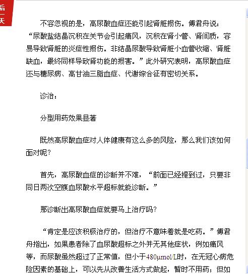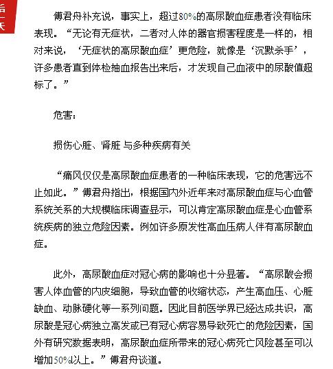 《广州日报》:高尿酸血症 没有痛风症状更可怕 2017年2月8日A17版