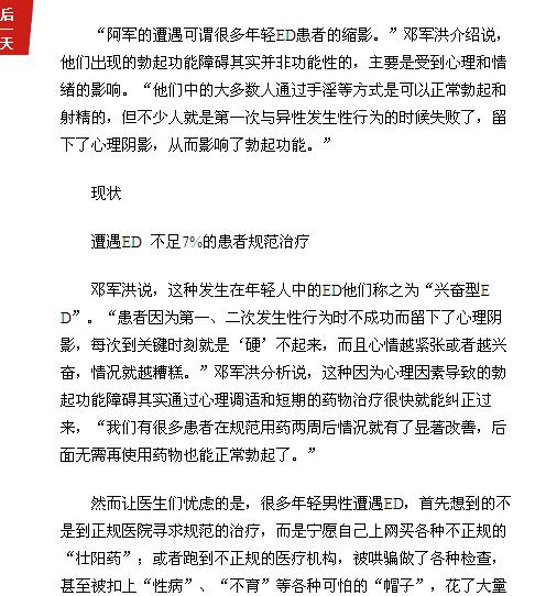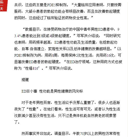 《广州日报》:年轻男性ED 多因“心病” 2016年7月10日B8版