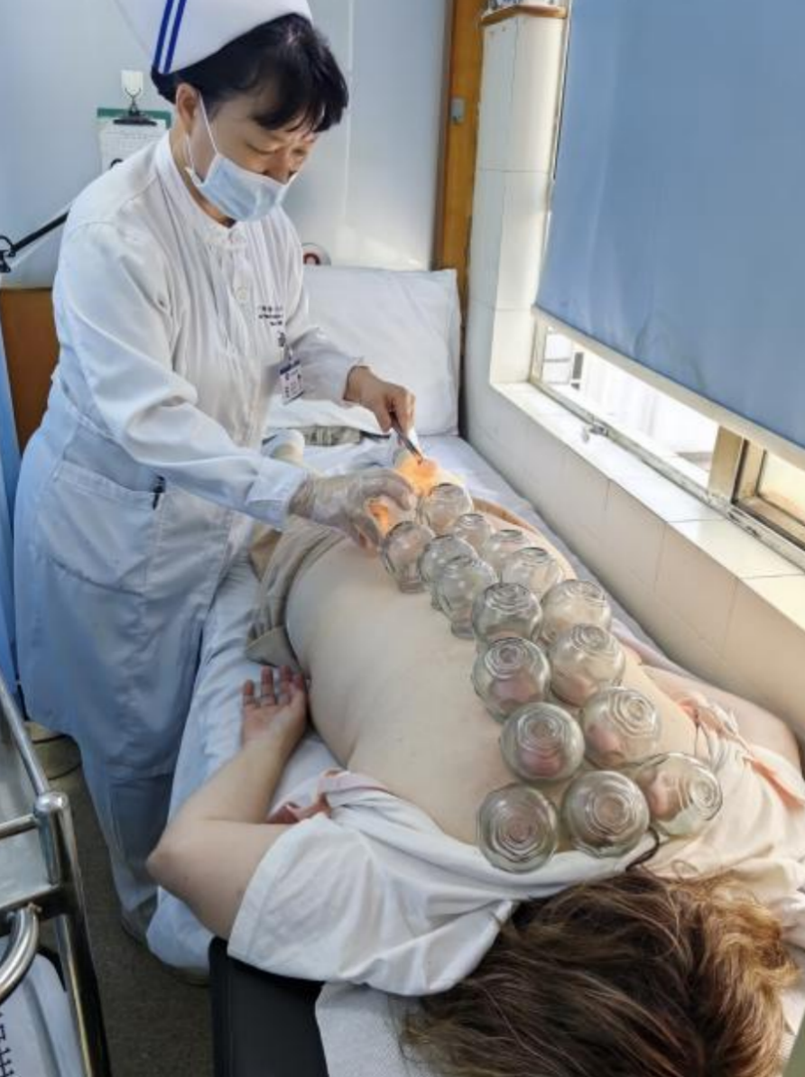 埃尔菲接受中医拔火罐疗法