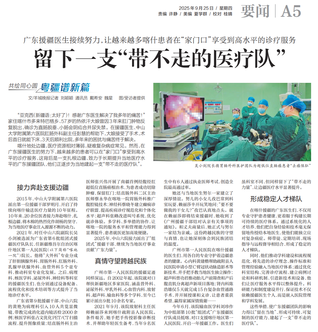 2025年,中山六院接力派出了“组团式”援疆干部,继续为当地医疗事业贡献“广东力量”。