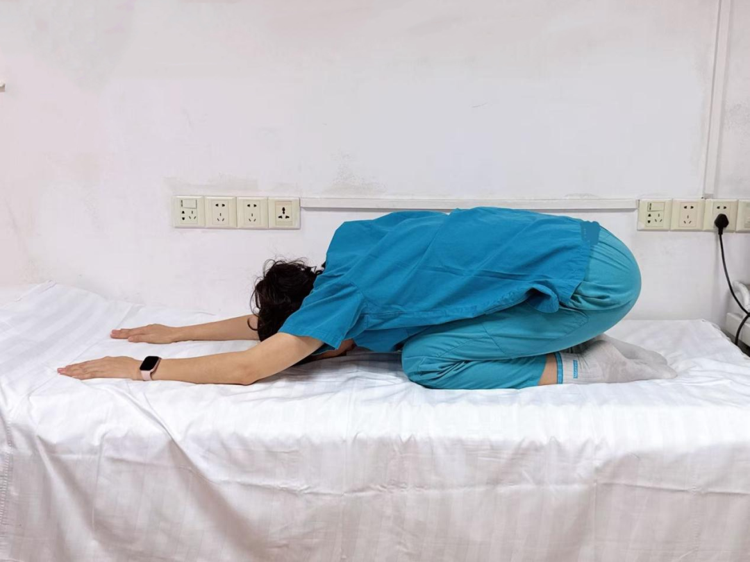 当急性疼痛缓解,进入居家康复阶段时,可以在无痛的前提下进行一些温和的锻炼。例如“婴儿式放松”:跪坐后臀部贴近脚跟,双手前伸俯身,深呼吸保持三十秒,有助于放松腰背肌肉。