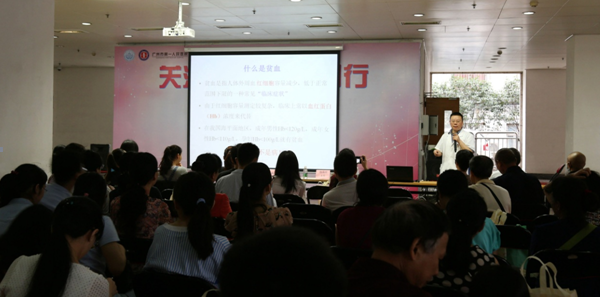 活动在科教信息部包品红主任的致辞中拉开序幕。随后医务人员生动形象地对贫血、造血干细胞等知识进行了讲解,内容丰富多样,通俗易懂 。由血液科王顺清主任进行了“解除贫血困扰享受美好生活”的讲座,对什么是贫血、贫血的类型、危害、治疗等做了深入浅出的讲解,他呼吁市民关注贫血,尤其广东省是地中海贫血的高发地区,市民需了解地贫,重在预防。他讲完后,不断有市民找到王主任咨询。接着,中华骨髓库广东分库业务科科长汤寿春进行了“造血干细胞知识”的讲座,对什么是造血干细胞、造血干细胞移植及其意义、健康人怎样捐献干细胞等多方面进行了讲解,在讲解结束后一个市民马上咨询汤科长捐献造血干细胞事宜,说她早就想去做捐献干细胞的志愿者,但一直不知该怎么做,现场汤科长一一解答,并记下了她的联系方式。本次活动,还对参会登记的市民进行了免费血常规+ABO血型检测,并现场对检测结果有疑问的市民作出解答,还派发了造血干细胞捐献的宣传册。
